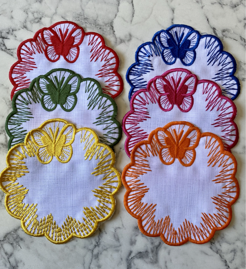 Altılı Kelebek Desenli Nakışlı Sunum Peçetesi Seti